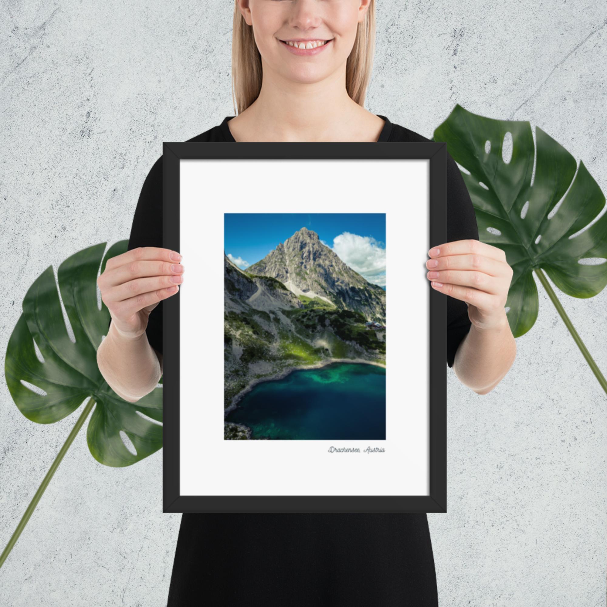 Wzbogać swoje wnętrze i poczuj magię Alp dzięki naszemu wyjątkowemu obrazowi Drachensee, Austria w ramie – idealnemu do stworzenia niepowtarzalnej atmosfery w Twoim domu!